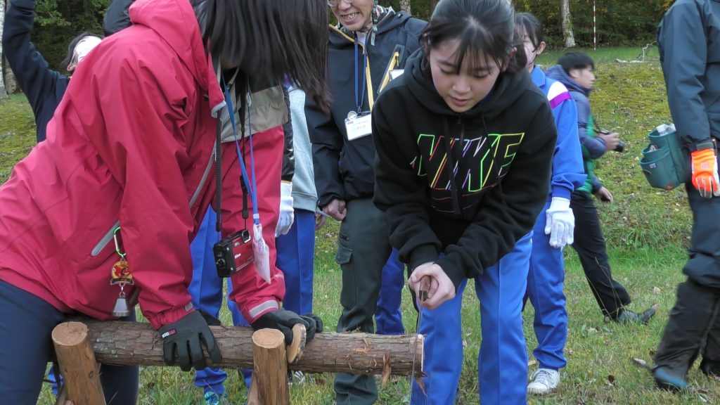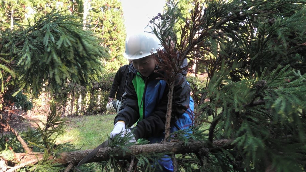 第50回全国育樹祭の機運醸成と、継続して森を守り育てることの大切さを普及啓発するために、本県の植樹祭初開催の地である「県民の森」において、仙北市立生保内小学校6年生が間伐などの作業体験を行いました。